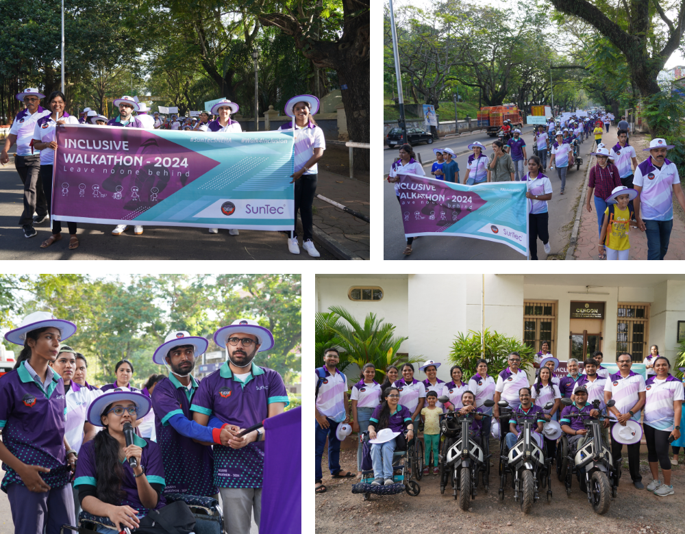 In August 2024, SNEHA organized an Inclusive Walkathon in Trivandrum to promote inclusivity and create a meaningful platform for people with disabilities to experience the spirit, camaraderie, and celebration typically associated with marathons. The initiative was conceptualized to ensure that individuals who are visually challenged, hearing impaired, wheelchair users, autistic, and from various partner institutions could take center stage as key participants, joined by SunTec volunteers. The 2 km walk from Kowdiar Junction to Kanakakunnu Palace reflected our collective commitment to fostering an environment where everyone is valued, supported, and empowered to participate fully in shared community experiences.